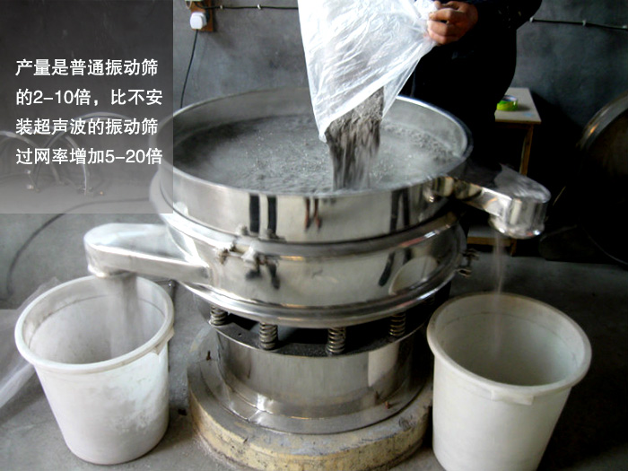 由于加裝超聲波篩分系統(tǒng)緣故,超聲波振動(dòng)篩在篩分粉末、顆粒、漿液類物料時(shí)產(chǎn)量是普通振動(dòng)篩的2-10倍,比不安裝超聲波的振動(dòng)篩過網(wǎng)率增加5-20倍。