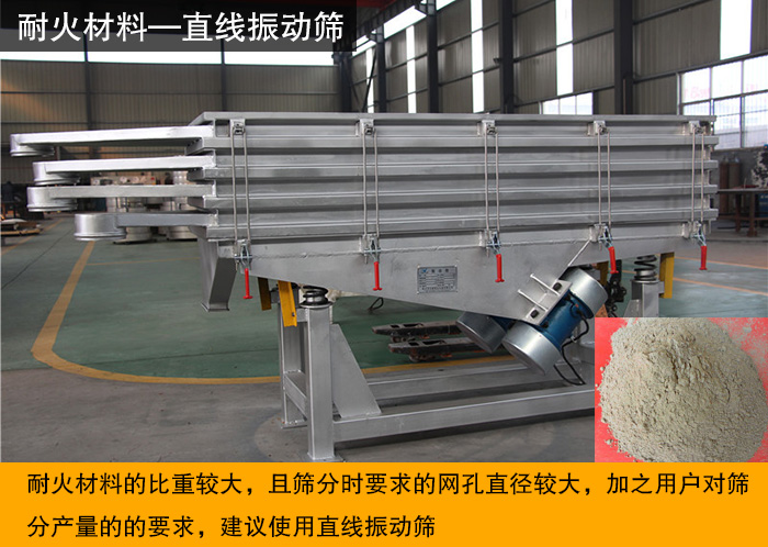 耐火材料一般是指耐火度在1580°C以上的無(wú)機(jī)非金屬材料,它包括天然礦石及按照一定的目的要求經(jīng)過(guò)一定的工藝制成的各種成品。耐火材料生產(chǎn)過(guò)程中,物料的級(jí)配是關(guān)鍵,關(guān)系到產(chǎn)品質(zhì)量的好壞,而級(jí)配必須進(jìn)行物料的分級(jí),這時(shí)振動(dòng)篩就派上用場(chǎng)了。那么究竟該選擇哪種振動(dòng)篩呢?