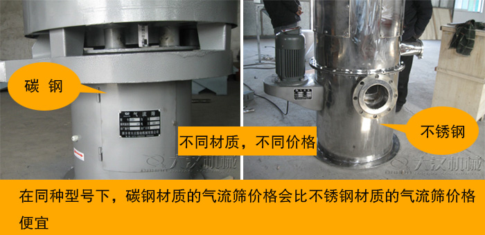 氣流篩材質(zhì)分為不銹鋼和碳鋼兩種,不銹鋼材質(zhì)的氣流篩防腐性能好,所以其價格會比碳鋼貴,所以,在同種型號下,碳鋼材質(zhì)的氣流篩價格會比不銹鋼材質(zhì)的氣流篩價格便宜。