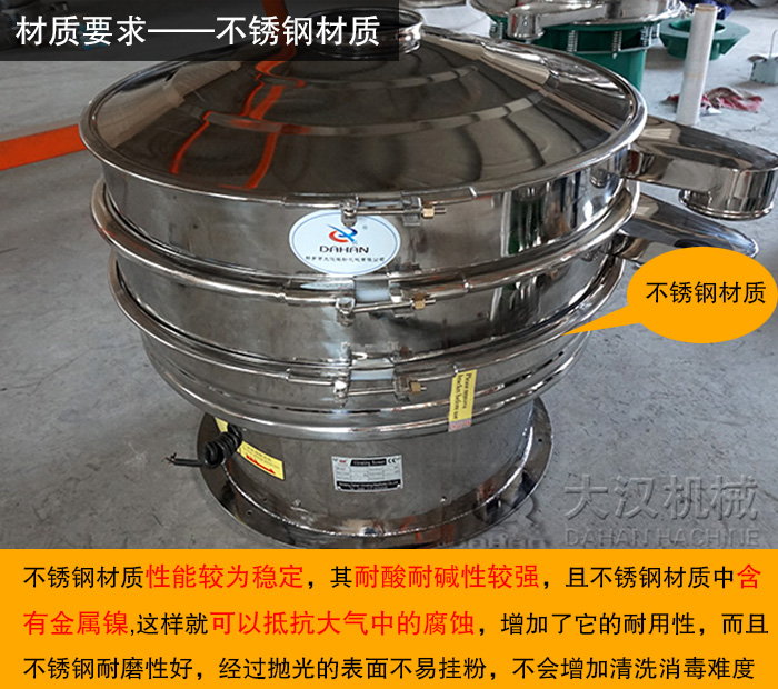 食品行業(yè)的振動(dòng)篩的篩機(jī)材質(zhì)必須使用優(yōu)質(zhì)不銹鋼材質(zhì),因?yàn)椴讳P鋼材質(zhì)性能較為穩(wěn)定,其耐酸耐堿性較強(qiáng),且不銹鋼材質(zhì)中含有金屬鎳,這樣就可以抵抗大氣中的腐蝕,增加了它的耐用性,而且不銹鋼耐磨性好,經(jīng)過拋光的表面不易掛粉,不會(huì)增加清洗消毒難度。因此篩分食品行業(yè)物料,通常需要不銹鋼材質(zhì)。