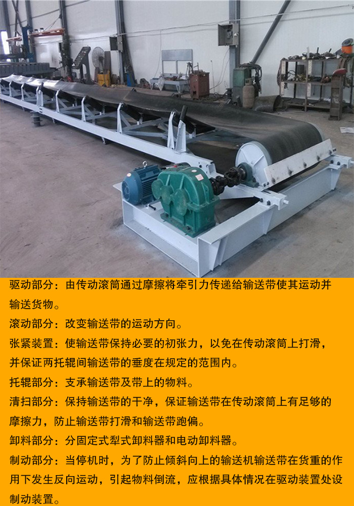 皮帶輸送機(jī)主要由驅(qū)動(dòng)裝置、滾動(dòng)裝置、張緊裝置、托輥部分、清掃部分、卸料部分、制動(dòng)部分等結(jié)構(gòu)組成,那么這些部分又在皮帶輸送機(jī)中發(fā)揮怎樣的作用呢?