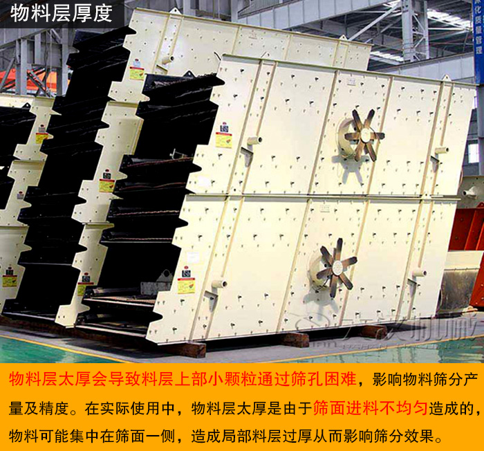 圓振動篩物料層太厚也是影響圓振動篩篩分效果的因素之一,物料層太厚會導(dǎo)致料層上部小顆粒通過篩孔困難,影響物料篩分產(chǎn)量及精度。在實際使用中,物料層太厚是由于篩面進料不均勻造成的,物料可能集中在篩面一側(cè),造成局部料層過厚從而影響篩分效果。