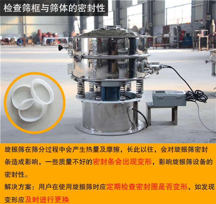 旋振篩除了采用全密閉的結(jié)構(gòu)來(lái)確保其密封性能,一般還會(huì)在篩框與篩體之間用密封條來(lái)對(duì)旋振篩進(jìn)行密封防塵,而振動(dòng)篩密封條材質(zhì)主要有橡膠材質(zhì)和硅膠材質(zhì),但是旋振篩在篩分過(guò)程中會(huì)產(chǎn)生熱量及摩擦,長(zhǎng)此以往,會(huì)對(duì)旋振篩密封條造成影響,一些質(zhì)量不好的密封條會(huì)出現(xiàn)變形,影響旋振篩設(shè)備的密封性。一旦密封性不好,在篩分過(guò)程中就會(huì)出現(xiàn)混料現(xiàn)象。所以大漢機(jī)械建議用戶在使用旋振篩時(shí)應(yīng)定期檢查密封圈是否變形,如發(fā)現(xiàn)變形應(yīng)及時(shí)進(jìn)行更換。