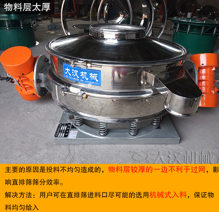 物料料層過厚主要的原因是投料不均勻造成的,物料層較厚的一邊不利于過網(wǎng),影響直排篩篩分效率,用戶可在直排篩進(jìn)料口盡可能的選用機(jī)械式入料,保證物料均勻給入。
