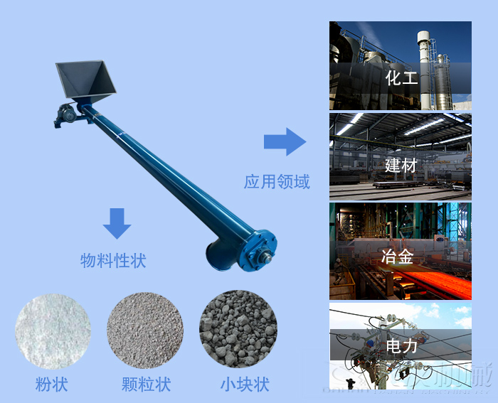 螺旋給料機適用于建材、化工、電力、冶金、煤炭、糧食等行業(yè),適用于水平或傾斜輸送粉狀、粒狀和小塊狀物料,如煤、灰、渣、水泥、糧食等。