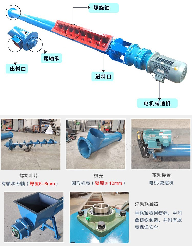 2、螺旋軸采用錳鋼材質(zhì),8mm加厚螺旋,程度減少石英砂對(duì)絞龍的磨損傷害,使用壽命更長(zhǎng);